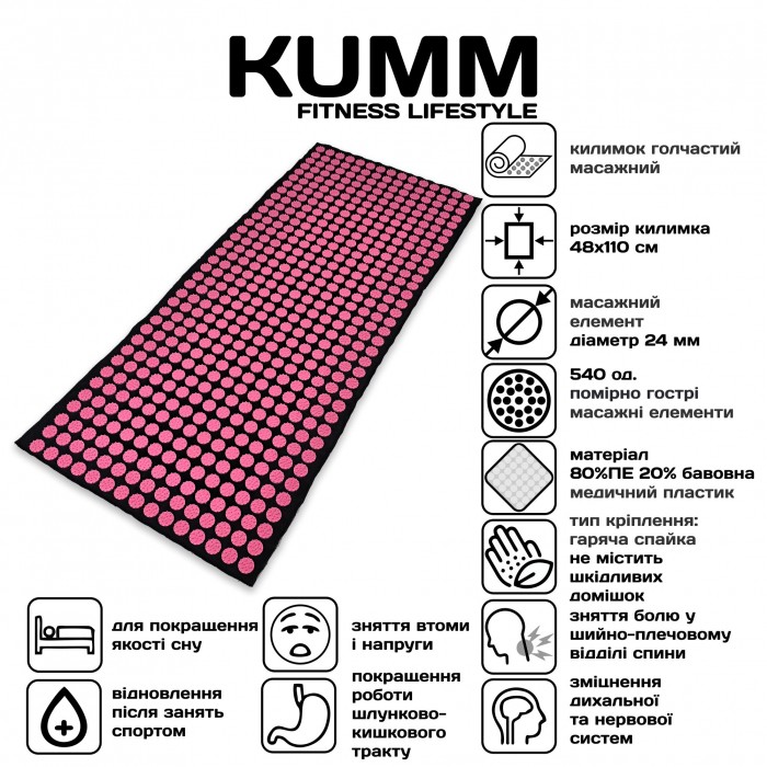 Немає відгуків про товар Килимок голчастий масажний акупунктурний KUMM 48×110 см 540 елементів рожевий SF11891