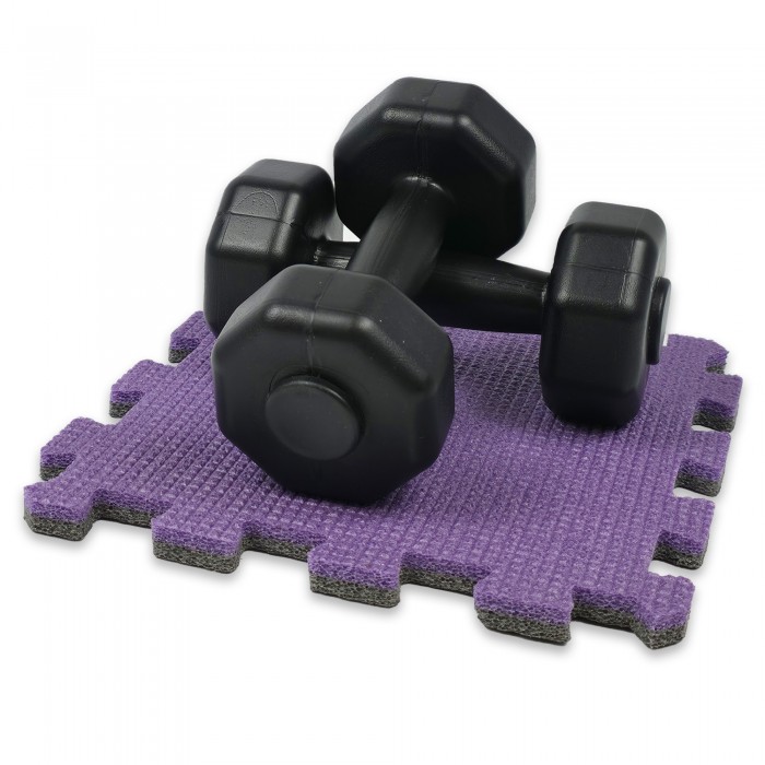 Модульний пінний килимок-підставка під гантелі у форматі «пазл» допомагає зберегти підлогу та зменшити шум під час домашніх тренувань. Підставка щільно лягає на поверхню, амортизує удари й приглушує звуки від динамічних вправ та контакту інвентарю з підлогою.