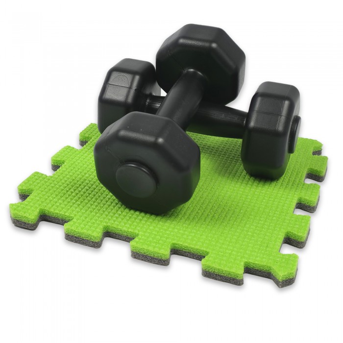 Модульний пінний килимок-підставка під гантелі у форматі «пазл» допомагає зберегти підлогу та зменшити шум під час домашніх тренувань. Підставка щільно лягає на поверхню, амортизує удари й приглушує звуки від динамічних вправ та контакту інвентарю з підлогою.