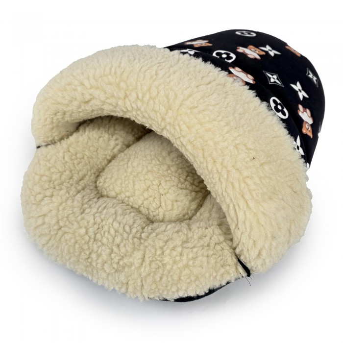 Лежак-спальник поєднує в собі найкращі матеріали для забезпечення максимального комфорту. Штучна овчина всередині створює невимовний затишок та тепло, як у обіймах найніжнішого пухнастого хмарочоса.Завдяки спеціальній формі лежака у формі спального мішка, ваша тварина може насолоджуватися максимальним комфортом і забутися в приємних відчуттях. Цей лежак не лише надає затишок, але також стає своєрідним коконом, де ваш улюбленець може спокійно відпочивати та насолоджуватися моментами спокою.