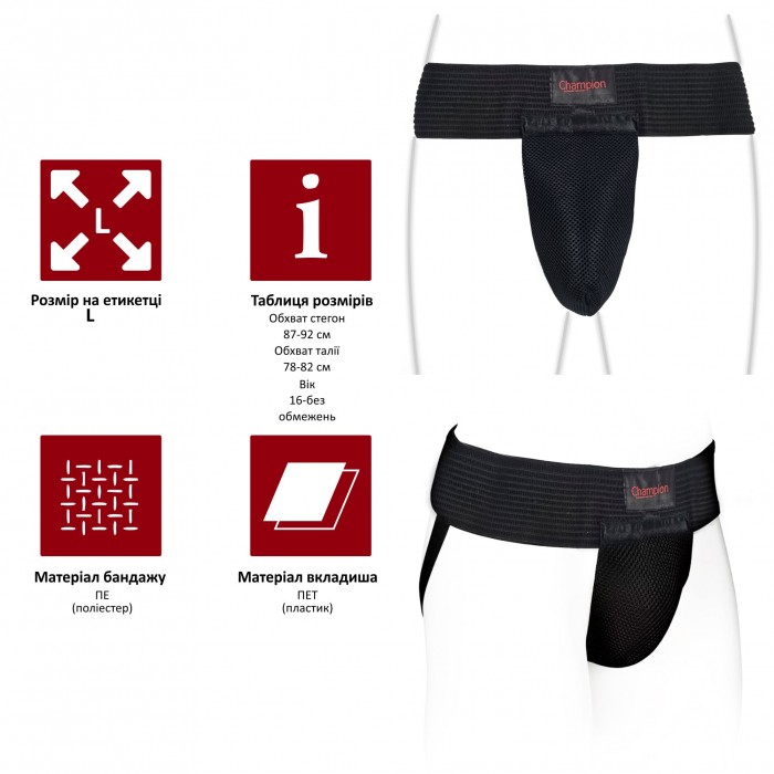 Немає відгуків про товар Паховий бандаж Champion L із захисним вкладишем CHM12157