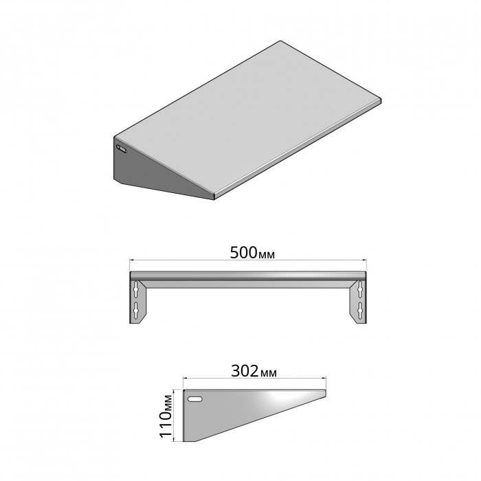 Полиця постачається без кріпильних елементів, оскільки може встановлюватися на різні типи стін та поверхонь. Це дає змогу підібрати оптимальний спосіб монтажу саме для ваших умов.