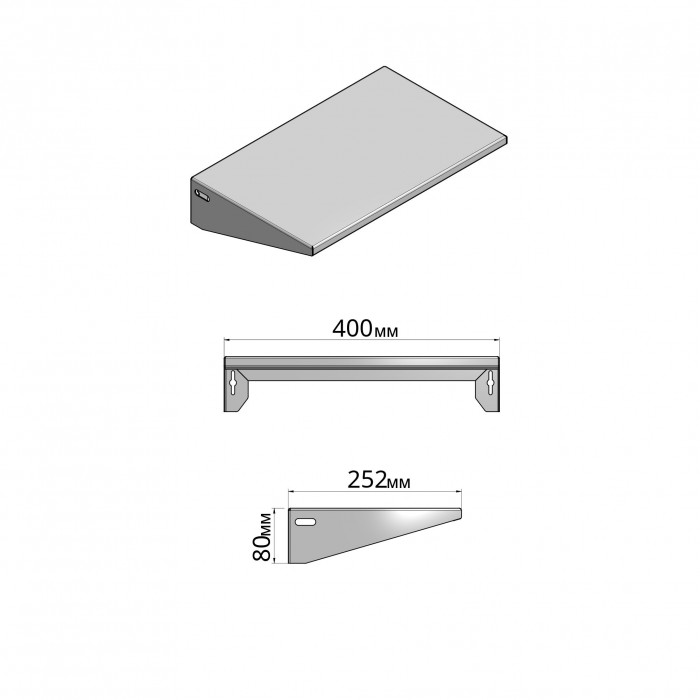 Полиця постачається без кріпильних елементів, оскільки може встановлюватися на різні типи стін та поверхонь. Це дає змогу підібрати оптимальний спосіб монтажу саме для ваших умов.