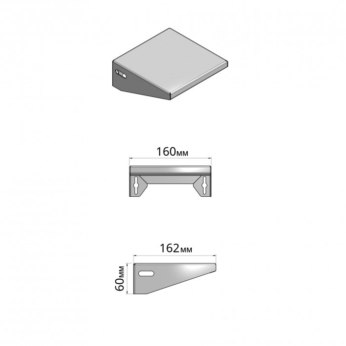 Полиця постачається без кріпильних елементів, оскільки може встановлюватися на різні типи стін та поверхонь. Це дає змогу підібрати оптимальний спосіб монтажу саме для ваших умов.