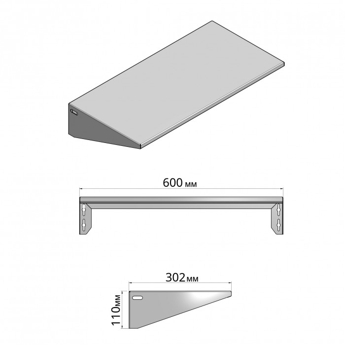 Полиця постачається без кріпильних елементів, оскільки може встановлюватися на різні типи стін та поверхонь. Це дає змогу підібрати оптимальний спосіб монтажу саме для ваших умов.