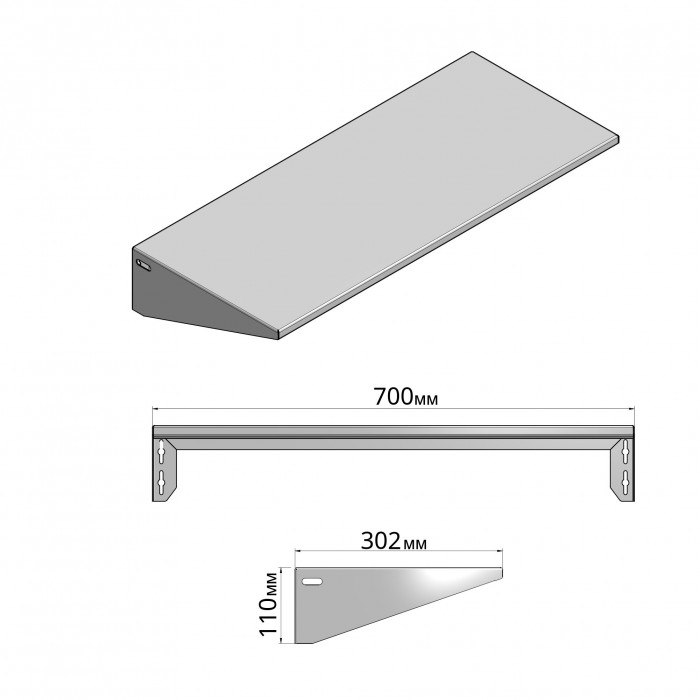 Полиця постачається без кріпильних елементів, оскільки може встановлюватися на різні типи стін та поверхонь. Це дає змогу підібрати оптимальний спосіб монтажу саме для ваших умов.