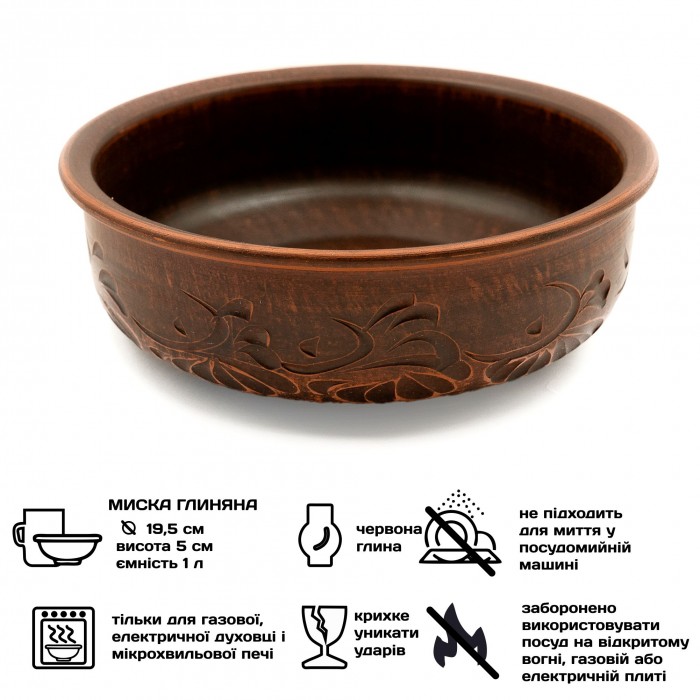 - Миска глиняна для запікання, об'єм 1 л - 1шт