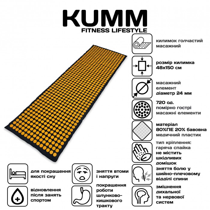 Коврик игольчатый массажный KUMM 48×150 см — удобный аксессуар для ежедневного расслабления и восстановления в домашних условиях. Благодаря большому размеру коврик подходит для комфортного использования во всю длину тела — для спины, шеи, плеч, поясницы и ног.