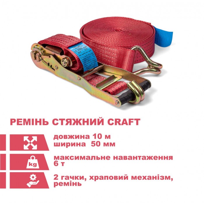 Нет отзывов о товаре Ремень стяжной 5 тонн 10 м красный РС-5-10-ЕВРО Craft