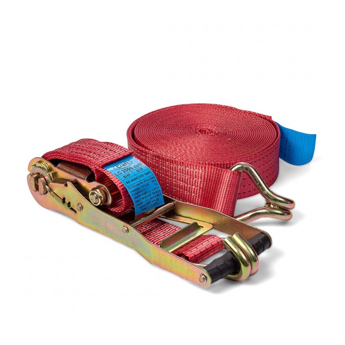 Стяжной ремень необходимым аксессуаром для транспортировки грузов и используется на автовозах. Стяжной ремень с храповым механизмом, или ремень стяжной с трещоткой подходит для крепления груза во время транспортировки. Благодаря встроенному храповому механизму можно быстро и эффективно натянуть ремень автовозный, надежно зафиксировав перевозимый груз. Стяжной ремень изготовлены из прочной текстильной полиэстеровой ленты. Технология производства ленты позволяет даже при разрыве нескольких нитей сохранить целостность ремня.
