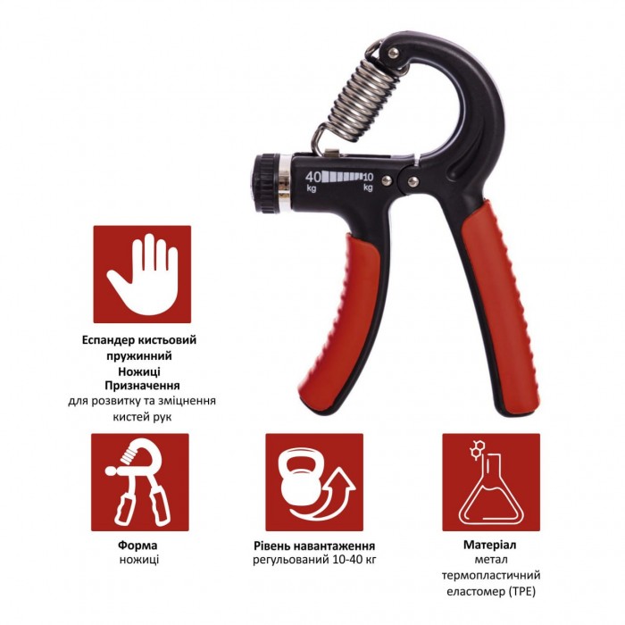 Нет отзывов о товаре Эспандер кистевой Ножницы пружинный регулируемый 10-40 кг JLA508-RED