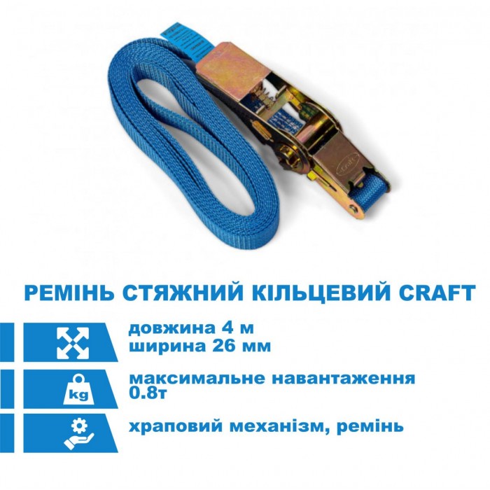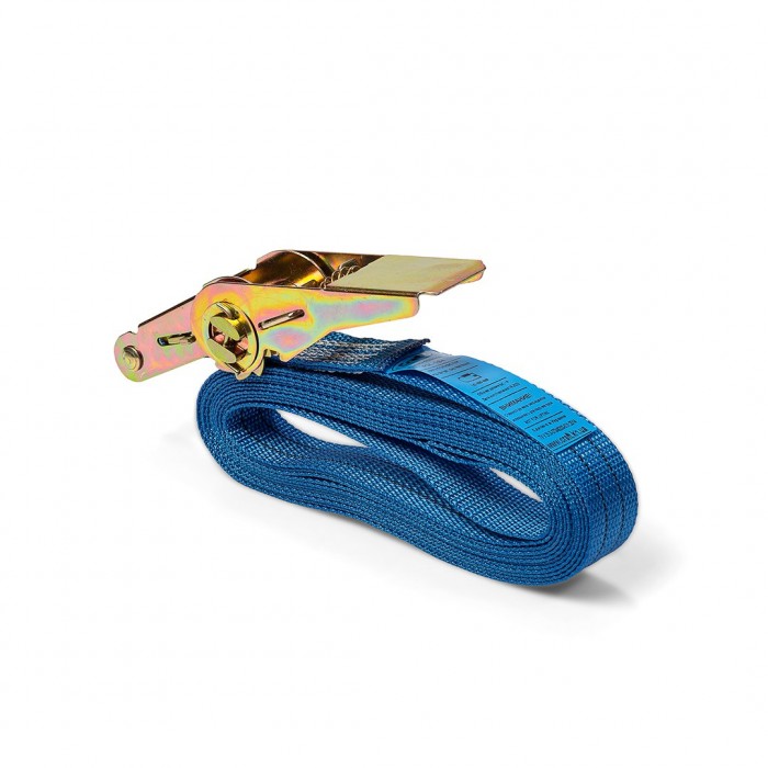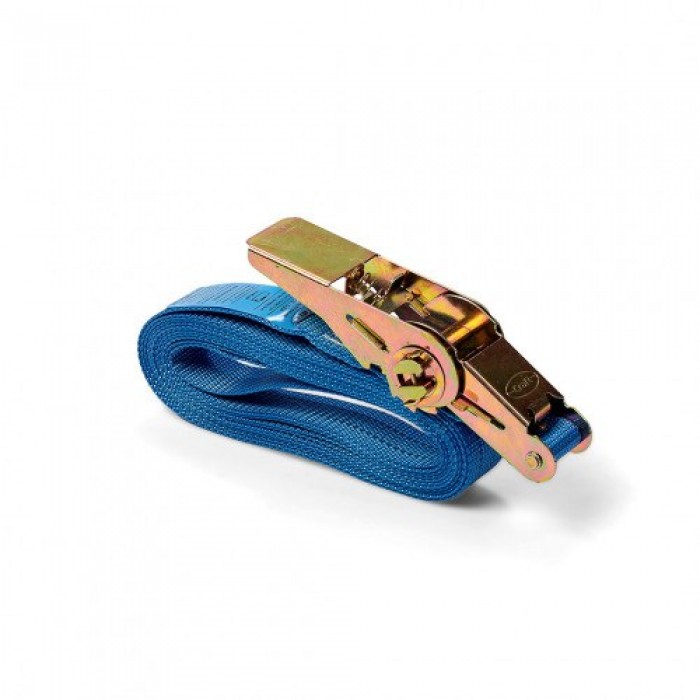 Стяжной ремень является необходимым аксессуаром для транспортировки грузов и используется на автовозах. Ремень стяжной с храповым механизмом или ремень стяжной с трещоткой подходит для крепления груза во время транспортировки. Благодаря встроенному храповому механизму можно быстро и эффективно натянуть автовозный ремень и зафиксировав перевозимый груз. Стяжной ремень изготовлен из прочной текстильной полиэстера. Технология производства ленты позволяет даже при разрыве нескольких нитей сохранить целостность ремня.