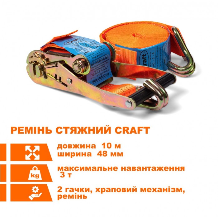 Стяжной ремень является необходимым аксессуаром для транспортировки грузов и используется на автовозах. Ремень стяжной с храповым механизмом или ремень стяжной с трещоткой подходит для крепления груза во время транспортировки. Благодаря встроенному храповому механизму можно быстро и эффективно натянуть автовозный ремень и зафиксировав перевозимый груз. Стяжной ремень изготовлен из прочной текстильной полиэстера. Технология производства ленты позволяет даже при разрыве нескольких нитей сохранить целостность ремня.