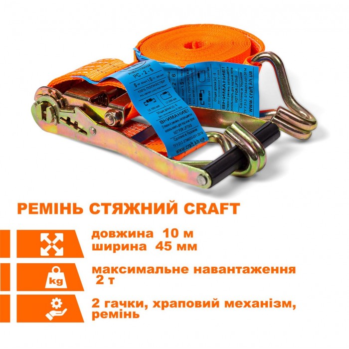 Стяжной ремень является необходимым аксессуаром для транспортировки грузов и используется на автовозах. Ремень стяжной с храповым механизмом или ремень стяжной с трещоткой подходит для крепления груза во время транспортировки. Благодаря встроенному храповому механизму можно быстро и эффективно натянуть автовозный ремень и зафиксировав перевозимый груз. Стяжной ремень изготовлен из прочной текстильной полиэстера. Технология производства ленты позволяет даже при разрыве нескольких нитей сохранить целостность ремня.