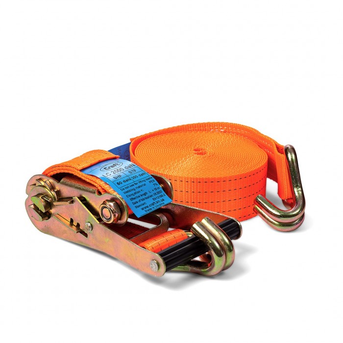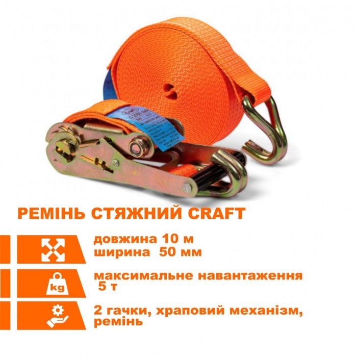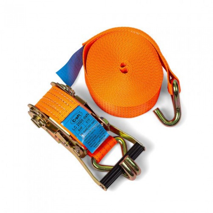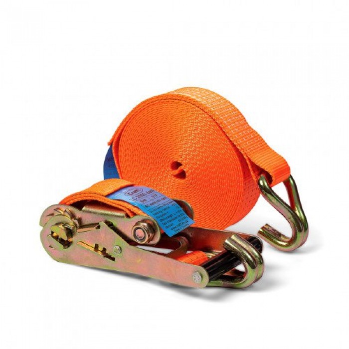 Стяжной ремень является необходимым аксессуаром для транспортировки грузов и используется на автовозах. Ремень стяжной с храповым механизмом или ремень стяжной с трещоткой подходит для крепления груза во время транспортировки. Благодаря встроенному храповому механизму можно быстро и эффективно натянуть автовозный ремень и зафиксировав перевозимый груз. Стяжной ремень изготовлен из прочной текстильной полиэстера. Технология производства ленты позволяет даже при разрыве нескольких нитей сохранить целостность ремня.