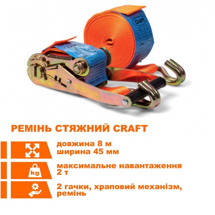 Стяжной ремень является необходимым аксессуаром для транспортировки грузов и используется на автовозах. Ремень стяжной с храповым механизмом или ремень стяжной с трещоткой подходит для крепления груза во время транспортировки. Благодаря встроенному храповому механизму можно быстро и эффективно натянуть автовозный ремень и зафиксировав перевозимый груз. Стяжной ремень изготовлен из прочной текстильной полиэстера. Технология производства ленты позволяет даже при разрыве нескольких нитей сохранить целостность ремня.