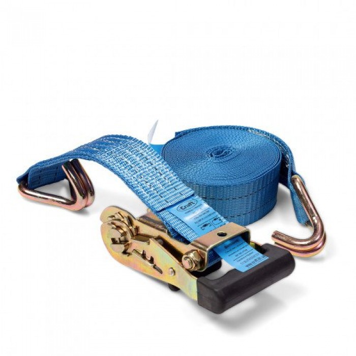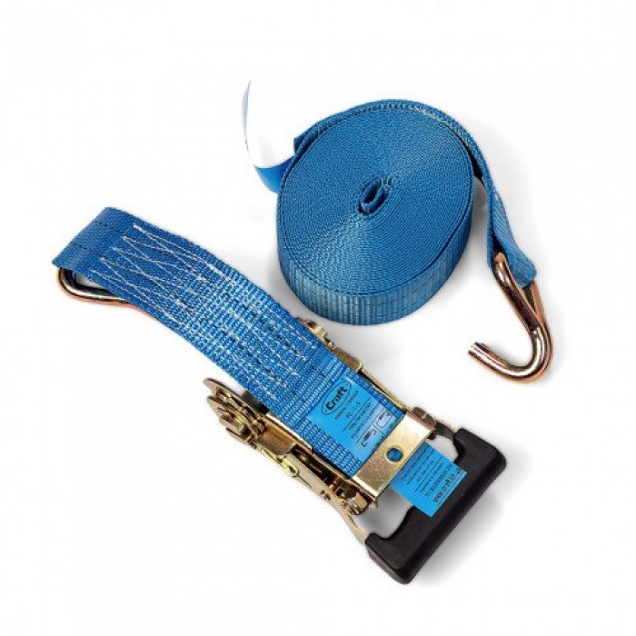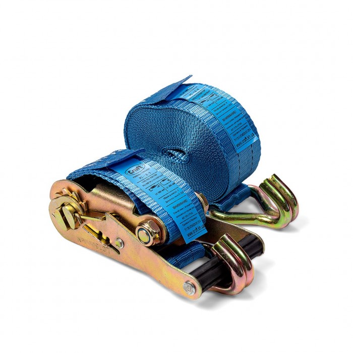 Стяжной ремень является необходимым аксессуаром для транспортировки грузов и используется на автовозах. Ремень стяжной с храповым механизмом или ремень стяжной с трещоткой подходит для крепления груза во время транспортировки. Благодаря встроенному храповому механизму можно быстро и эффективно натянуть автовозный ремень и зафиксировав перевозимый груз. Стяжной ремень изготовлен из прочной текстильной полиэстера. Технология производства ленты позволяет даже при разрыве нескольких нитей сохранить целостность ремня.