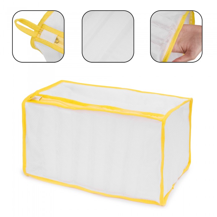 Мешок для стирки обуви #00515-6 бело-желтого цвета из мягкой трикотажной сетки.